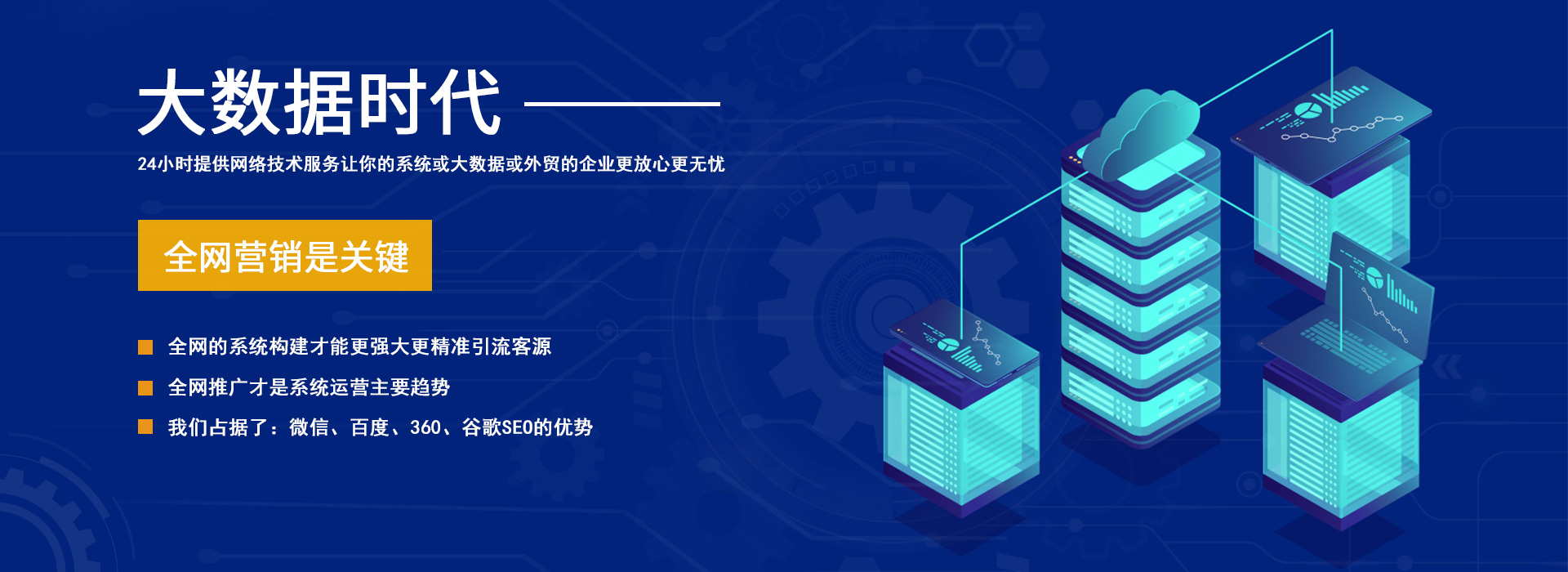 服務(wù)特色:24小時(shí)提供網(wǎng)絡(luò)技術(shù)支持,讓你的系統(tǒng)或大數(shù)據(jù)或外貿(mào)的企業(yè)更放心更無憂。